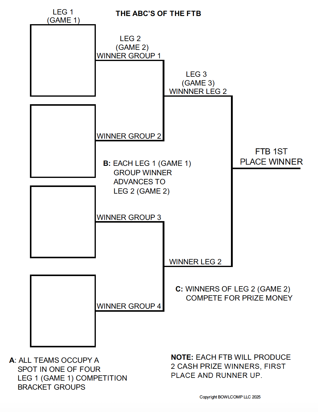 BowlComp, in partnership with the UBA, delivers online Fantasy Team Brackets for active UBA members. Bowlers can sign up for upcoming tournaments directly through the platform and compete using our streamlined bracket system. Each event features one large elimination round, followed by traditional Semifinals and Finals to determine the champion. The chart below shows exactly how the bracket flow works.